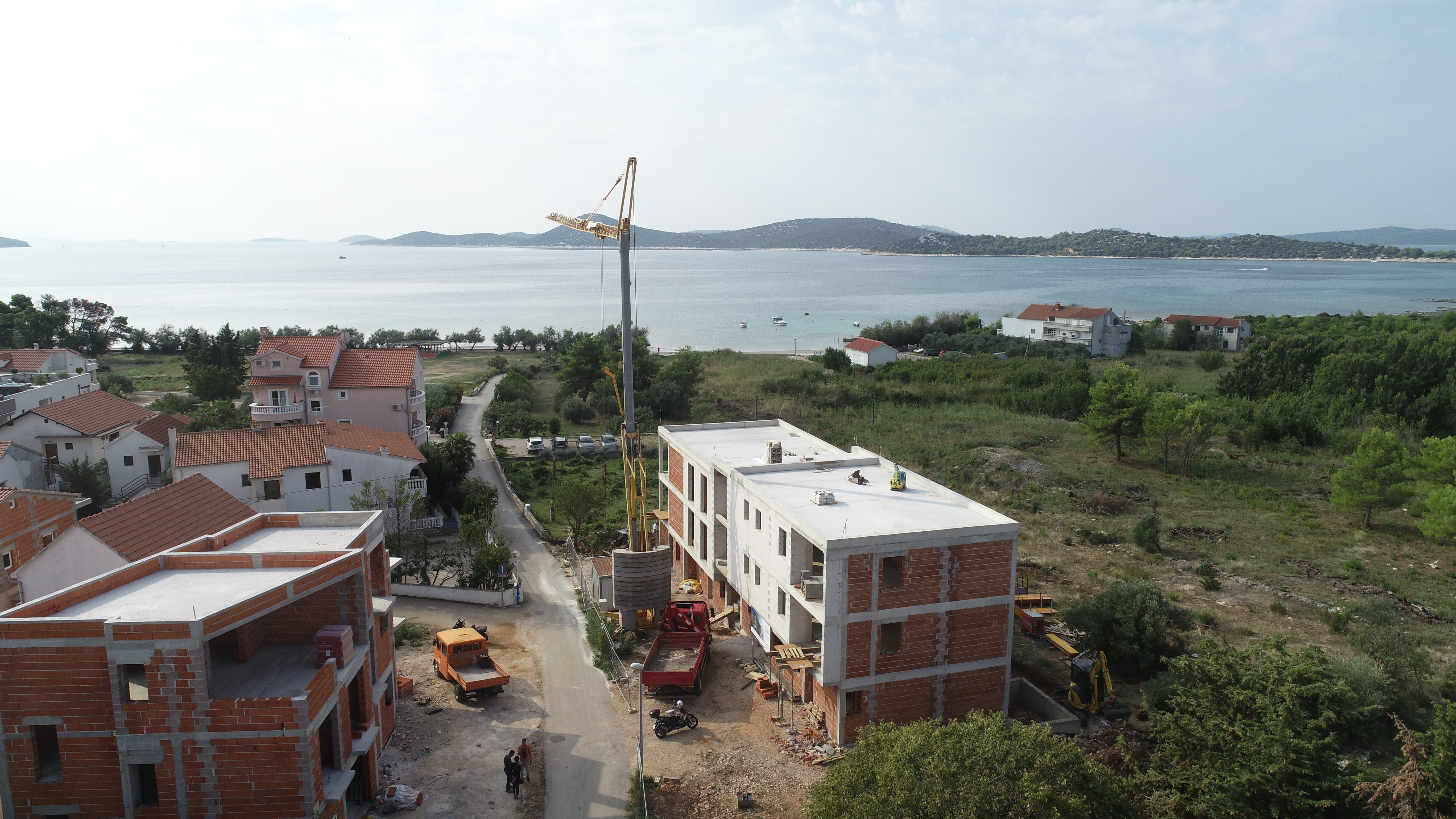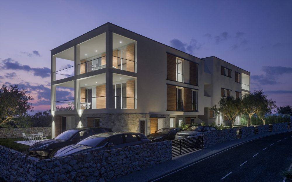 Objekt se nalazi 70 m od mora i plaže na jugozapadnoj, mirnoj strani grada Vodica bez puno buke i velikog prometa. Do objekta vodi sporedna asfaltirana prometnica koja vodi na plažu.Svi stanovi imaju parking i zajedničke zelene površine ispred zgrade, dok prizemni stanovi imaju vlastiti vrt. Sve stanove krasi moderno uređenje u neutralnim tonovima.